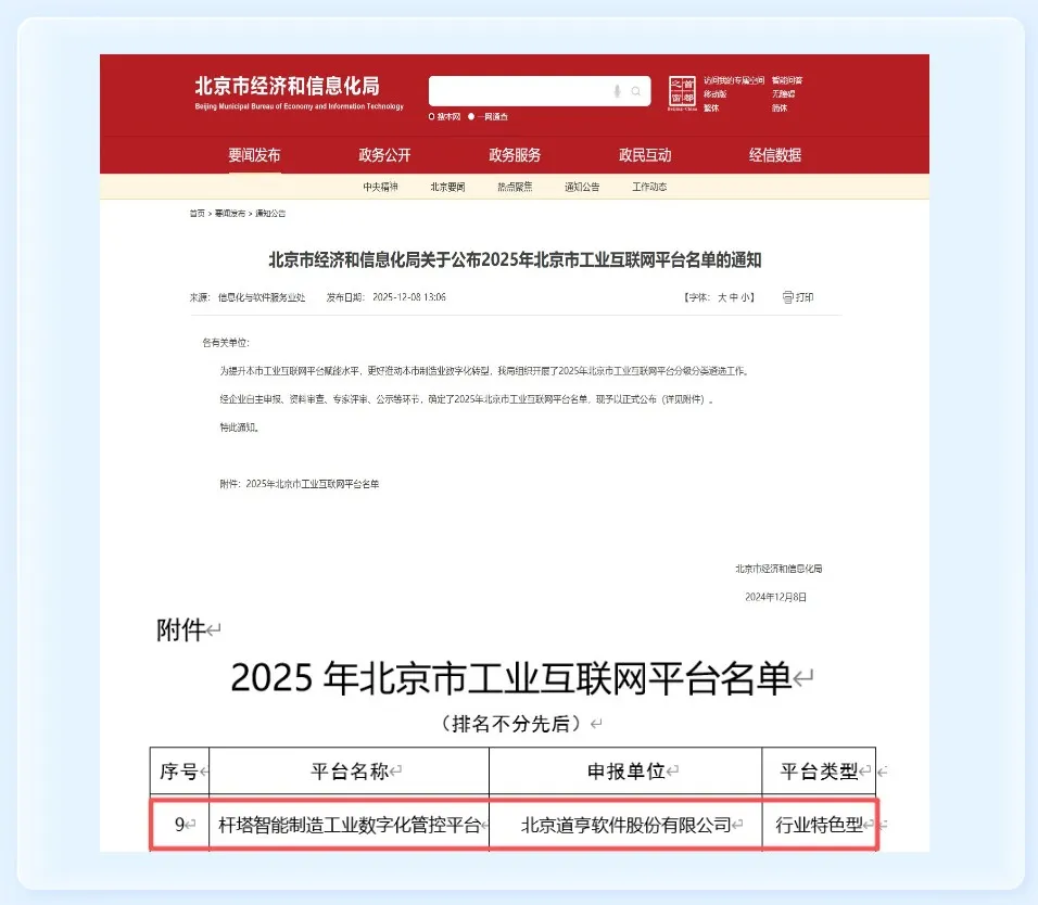 喜报 | 道亨杆塔智能制造工业数字化管控平台入选北京市工业互联网平台